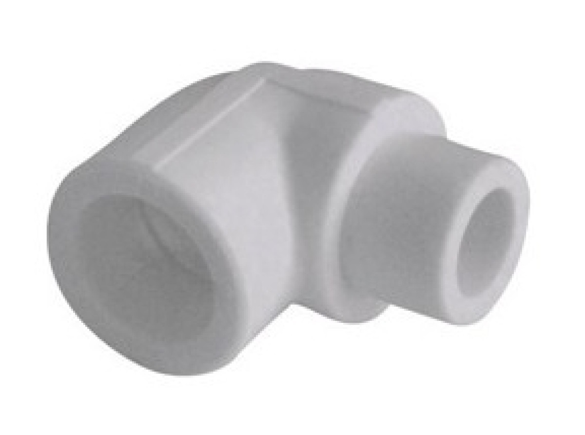 PP-R кут зовнішній-внутрішній 20 мм 90° — це фітинг для повороту та переходу на різьблення.