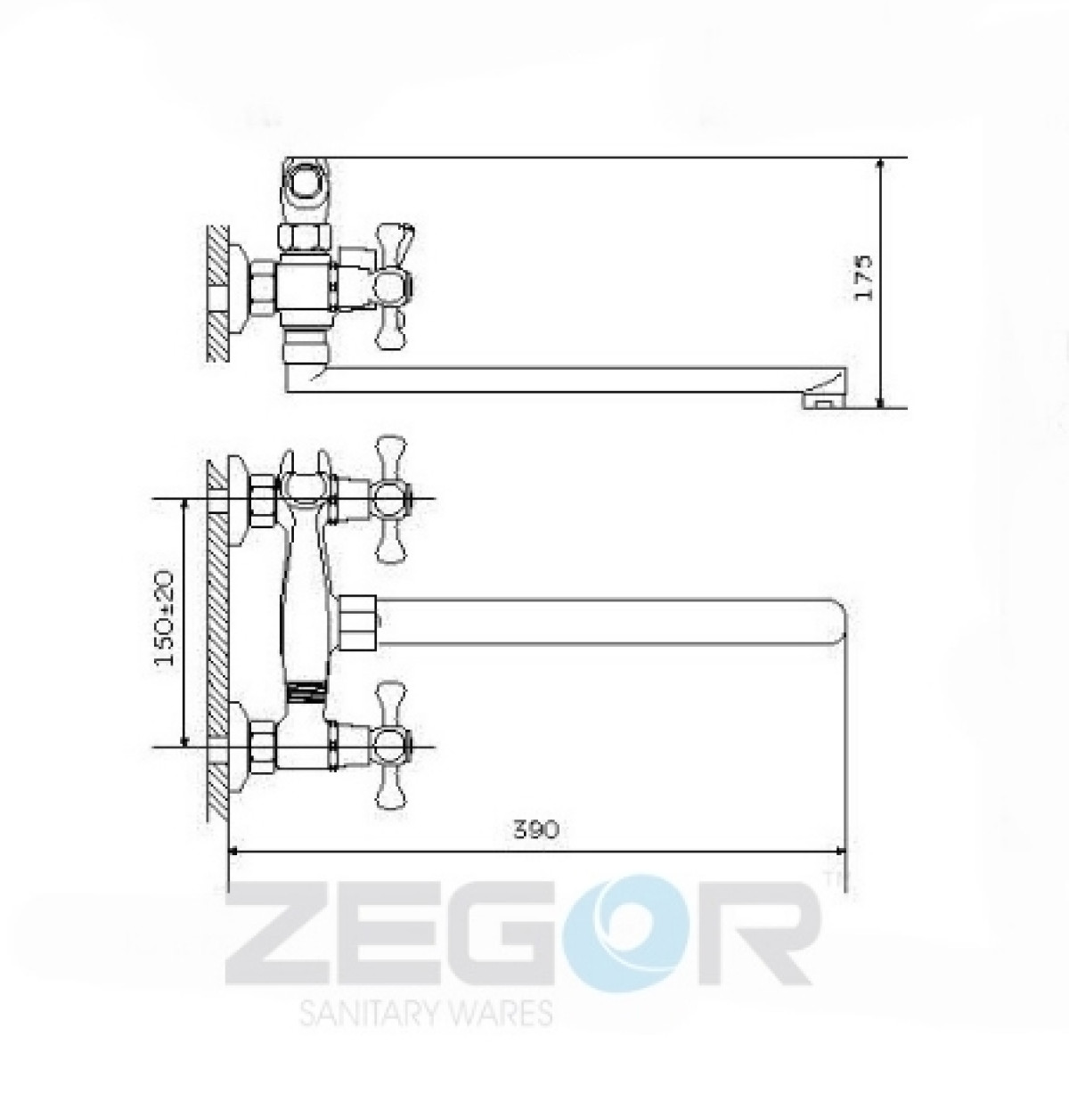 ЗМІШУВАЧ ДЛЯ ВАННИ DMT7-A827ZEGOR: Настінний змішувач з довгим поворотним виливом та строгим дизайном