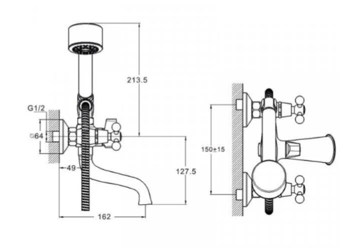 - Тип: Змішувач для ванни, настінний, одноважільний.