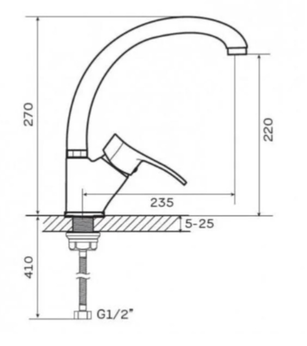 - Тип: Змішувач для кухні, настільний, одноважільний.