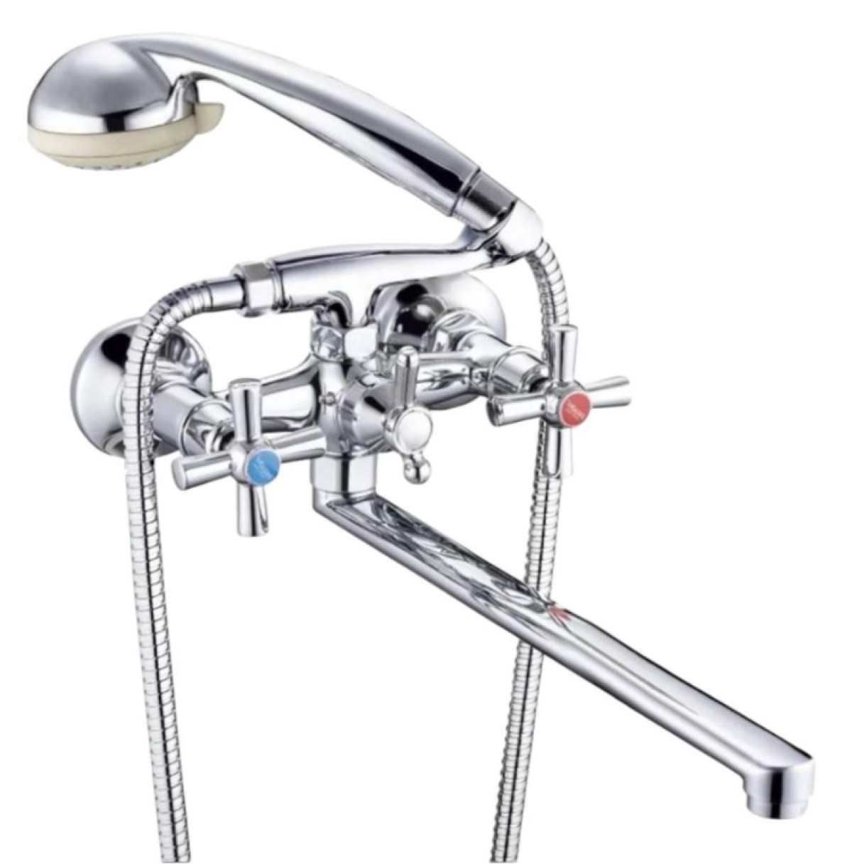 - Тип: Змішувач для ванни, настінний, двовентильний.