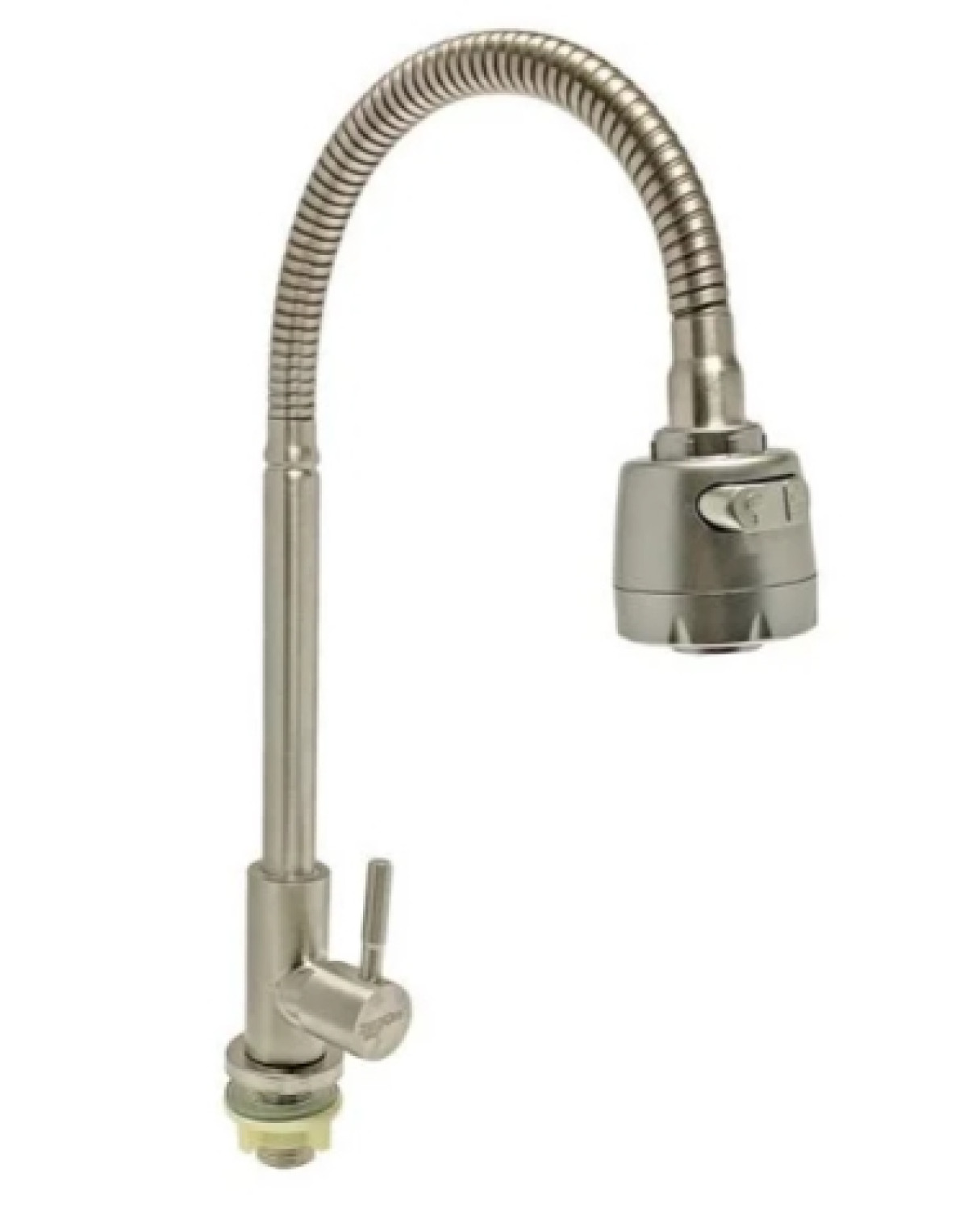 Монокран SAP14-E090 ZEGOR — це кран для холодної або попередньо змішаної води (не змішувач). Призначений для встановлення на мийку та має високий поворотний вилив. Корпус виготовлений із сантехнічного сплаву (Силумін) (E-серія ZEGOR), має хромоване покриття. Керування одноважільне. Це доступне рішення для кухні, де потрібна лише одна вода.