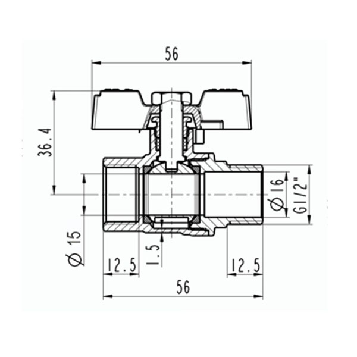 а висока термостійкість робить його універсальним. Корпус та запірна куля виготовлені з високоякісної латуні CW617N. Латунна куля відполірована та покрита хромом для більшої гладкості поверхні. Ущільнення виготовлені з термостійкого тефлона PTFE. Раз на кілька місяців рекомендується повертати ручку крана,