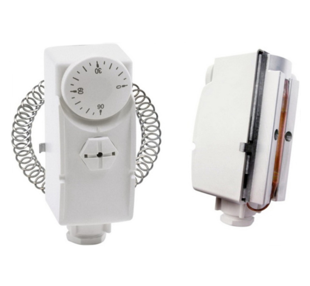 Термостат реалізує фактор вимірювання, зміни температури теплоносія в трубі (замикає, або розриває електричний ланцюг). Тепло передається електричному термостату за допомогою сталевої задньої стінки. Монтаж термостата можливий на трубах діаметром від 3/4” до 4” за допомогою прикладеної сталевої пружини, яка забезпечить надійне зчеплення з трубою. Термостат використовується для автоматичного регулювання котлів, теплових насосів та іншого обладнання (циркуляційний насос, сервопривід, вентилятор і т.д.).