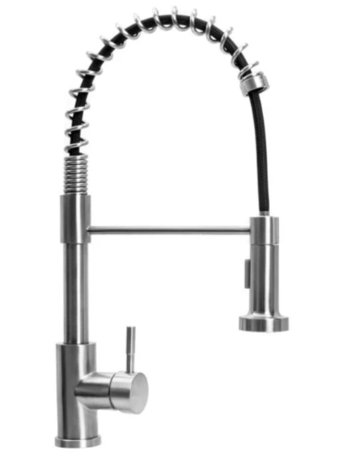 - Перевага: Корпус із нержавіючої сталі, функціональний висувний вилив.