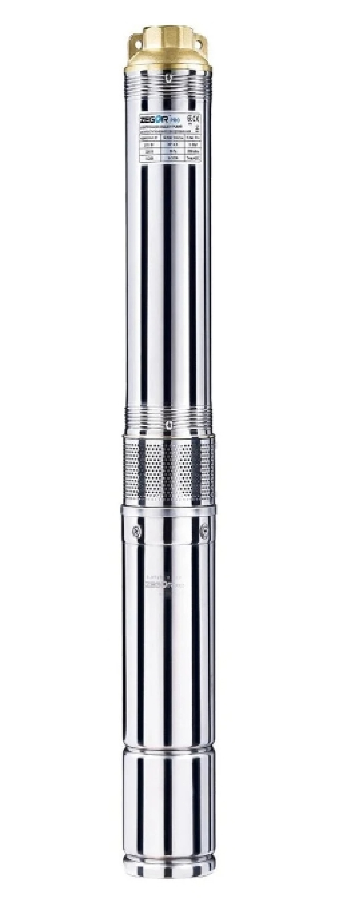 Насос 4SEM2/27-1.5 ZEGOR — це глибинний багатоступінчастий відцентровий насос (4 дюйми) преміум-класу, призначений для підйому чистої холодної води зі свердловин глибиною до 80 м. Споживана потужність — 1.5 кВт. Забезпечує високий максимальний напір до 170 м та продуктивність до 3 м³/год. Корпус насосної частини та вал виготовлені з нержавіючої сталі AISI 304, напірний патрубок та фланець — із латуні. Використовується для організації автономного водопостачання.