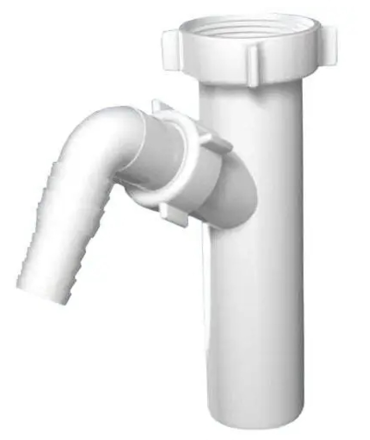 Фітинг (відведення) для організації зливу з перехідним діаметром. Позначення вказують на приєднувальний діаметр 1 1/2 дюйма (з боку сифона) з переходом на діаметр 40 мм (з боку каналізаційної труби). Використовується для прямого підключення зливного обладнання до каналізаційної труби DN40.