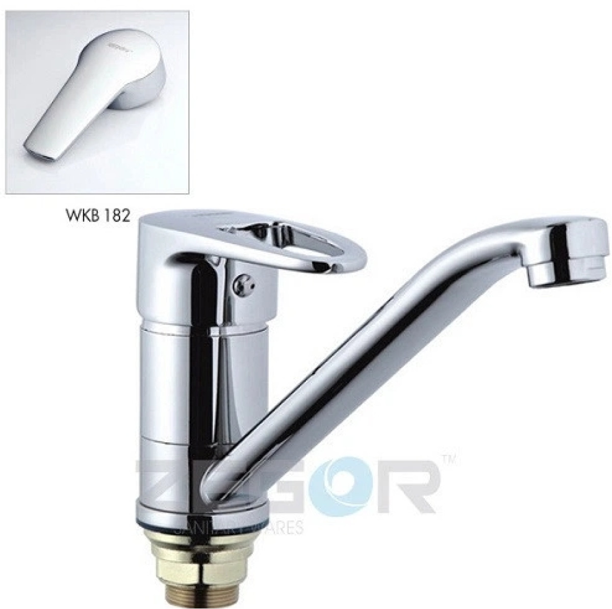Змішувач PED4-A182 ZEGOR — це настільний (на гайці) одноважільний змішувач для кухні. Корпус виготовлений із латуні (PED-серія) з хромованим покриттям. Оснащений поворотним виливом та керамічним картриджем. Схожий з моделлю PED4-A180, але має інший дизайн або форму виливу.