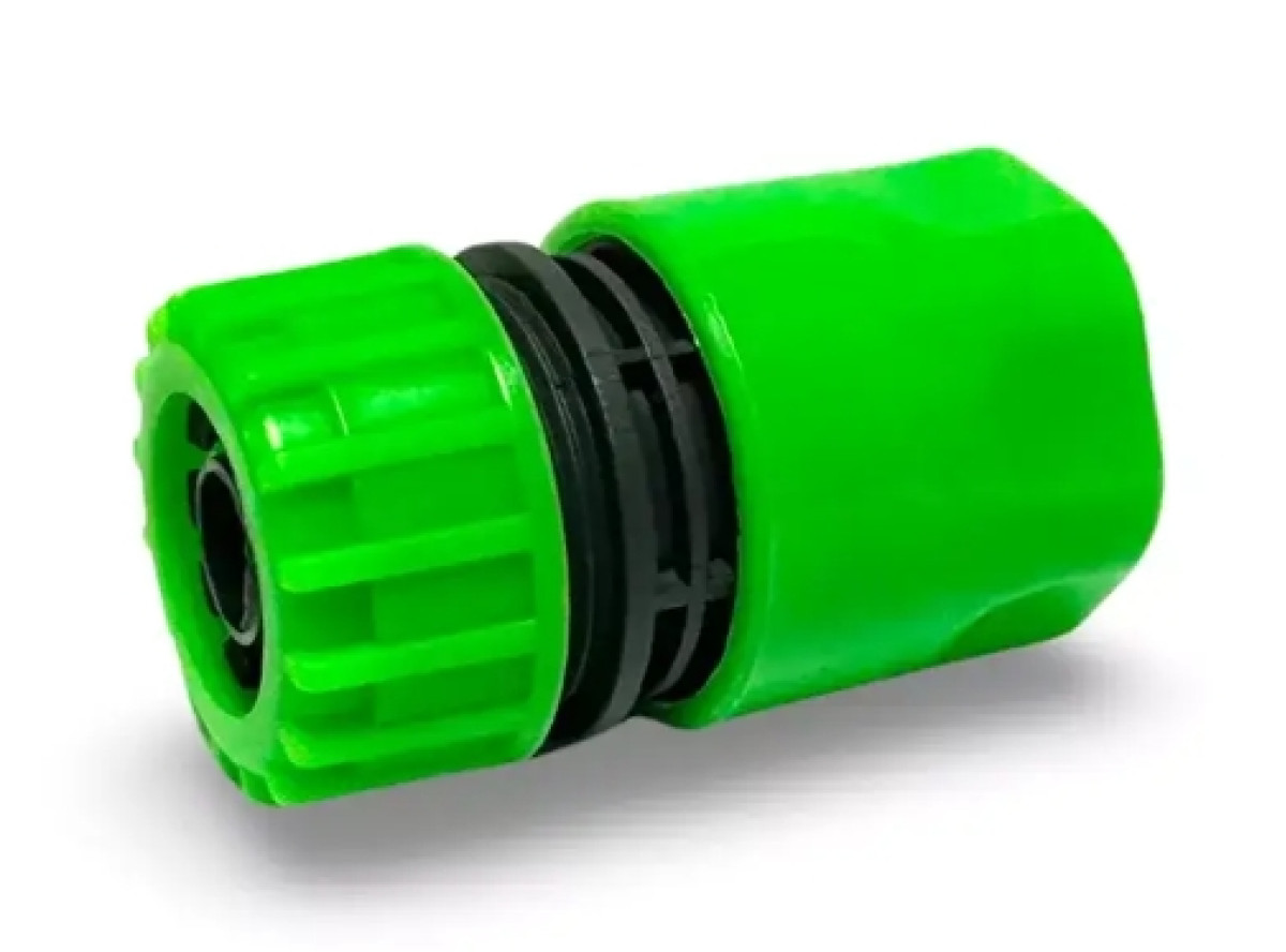Універсальний швидкознімний конектор для з'єднання садового шланга з поливальним обладнанням або краном. Підходить для шлангів діаметром 1/2 та 5/8 дюйма. Виготовлений із ударостійкого пластику у салатовому кольорі.