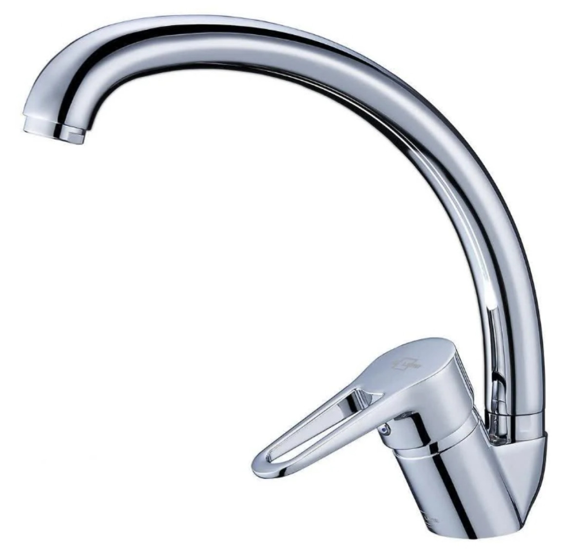 Одноважільний врізний змішувач для кухні Solone (серія SUP). Корпус виготовлений із силуміну/сплаву (A045) з хромованим покриттям. Має довгий, плоский, поворотний вилив та керамічний картридж Ø35 мм. Бюджетна серія.