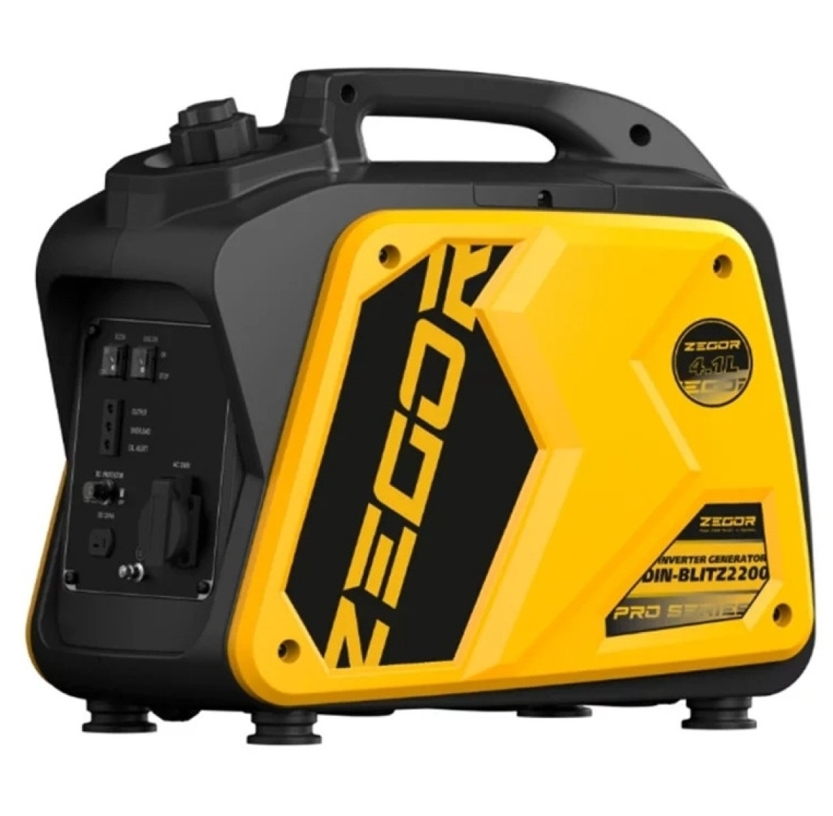 Інверторний бензиновий генератор ZEGOR. Номінальна потужність 2.0 кВт, максимальна 2.2 кВт. Оснащений закритим шумоізолюючим кожухом (серія BLITZ/MUTE), що забезпечує низький рівень шуму. Ідеальний для походів та чутливої електроніки.