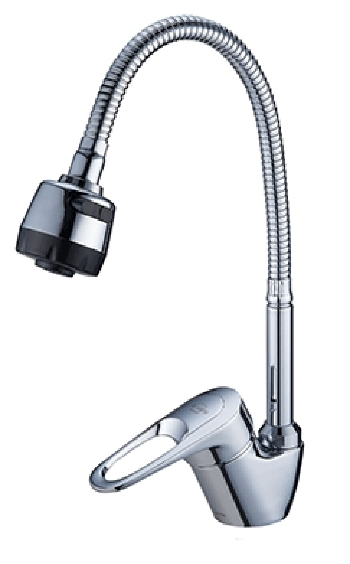 Одноважільний врізний змішувач для кухні Solone (серія LOP). Корпус із цинкового сплаву (B043) з хромованим покриттям. Має поворотний вилив та керамічний картридж.
