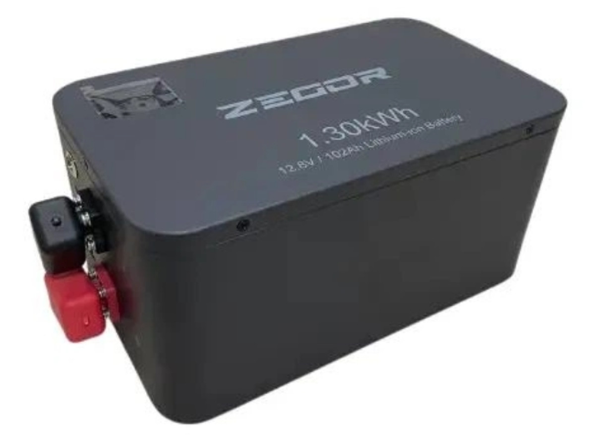 Літій-залізо-фосфатний акумулятор (LiFePO4) ZEGOR. Напруга 12V, ємність 100 А·год. Застосовується для систем безперебійного живлення, сонячних електростанцій, електротранспорту. Відрізняється високою безпечністю та довгим терміном служби.