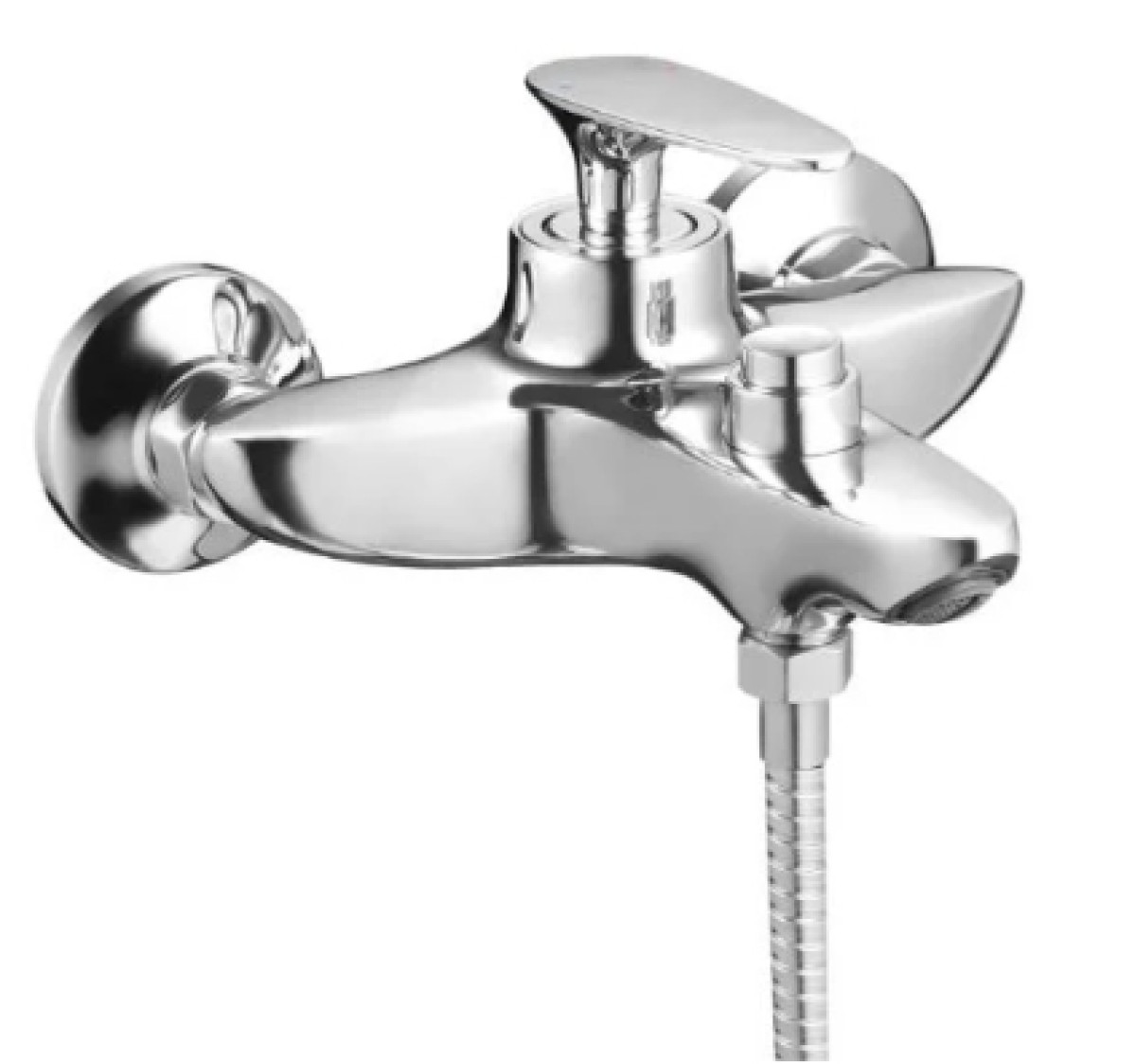 Настінний одноважільний змішувач для ванни ZEGOR (серія SANAT). Корпус із латуні/сплаву з хромованим покриттям. Має поворотний вилив та комплектується душовим набором.