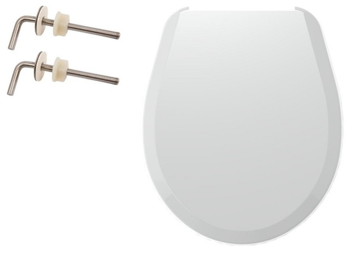 Класичне сидіння для унітазу білого кольору (модель "Орхідея"). Комплектується кріпленням з нержавіючої сталі (M).
