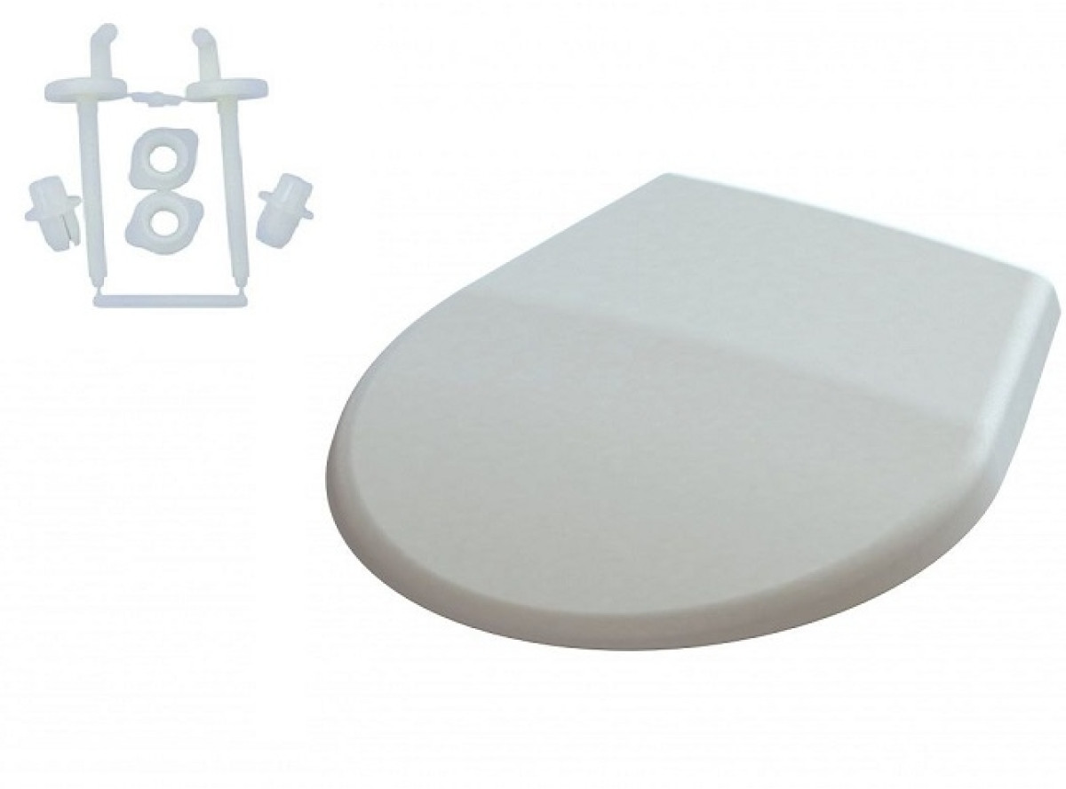 Класичне сидіння для унітазу білого кольору (модель "Віола"). Комплектується кріпленням з нержавіючої сталі (M).