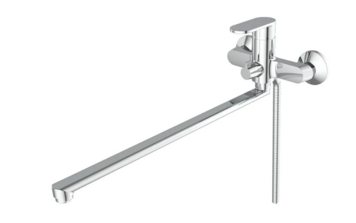 Настінний одноважільний змішувач для ванни ZEGOR (серія REICH). Корпус із латуні/сплаву з хромованим покриттям. Модель з коротким литим виливом (або без нього), призначена для душу/ванни.