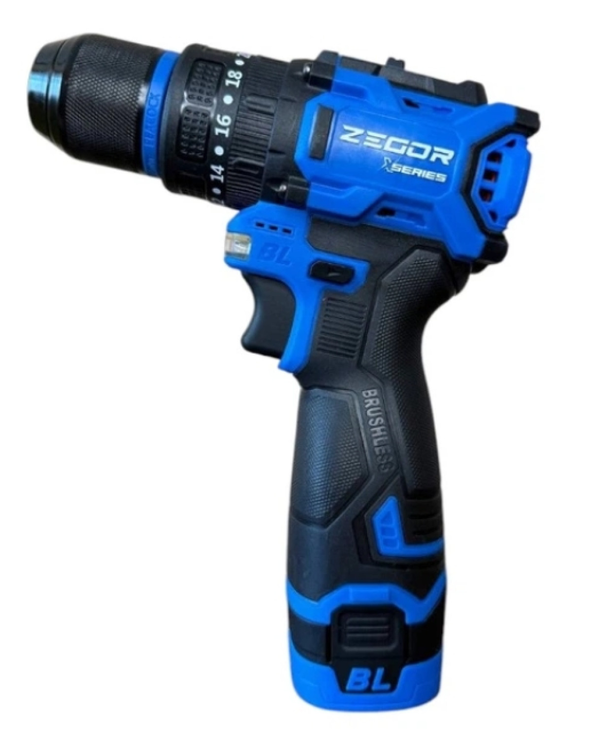 Акумуляторний безщітковий ударний (BLH) шуруповерт ZEGOR. Напруга 16V. Оснащений ударним режимом (H) для свердління цегли/бетону. Серія CDAX, безщітковий двигун.