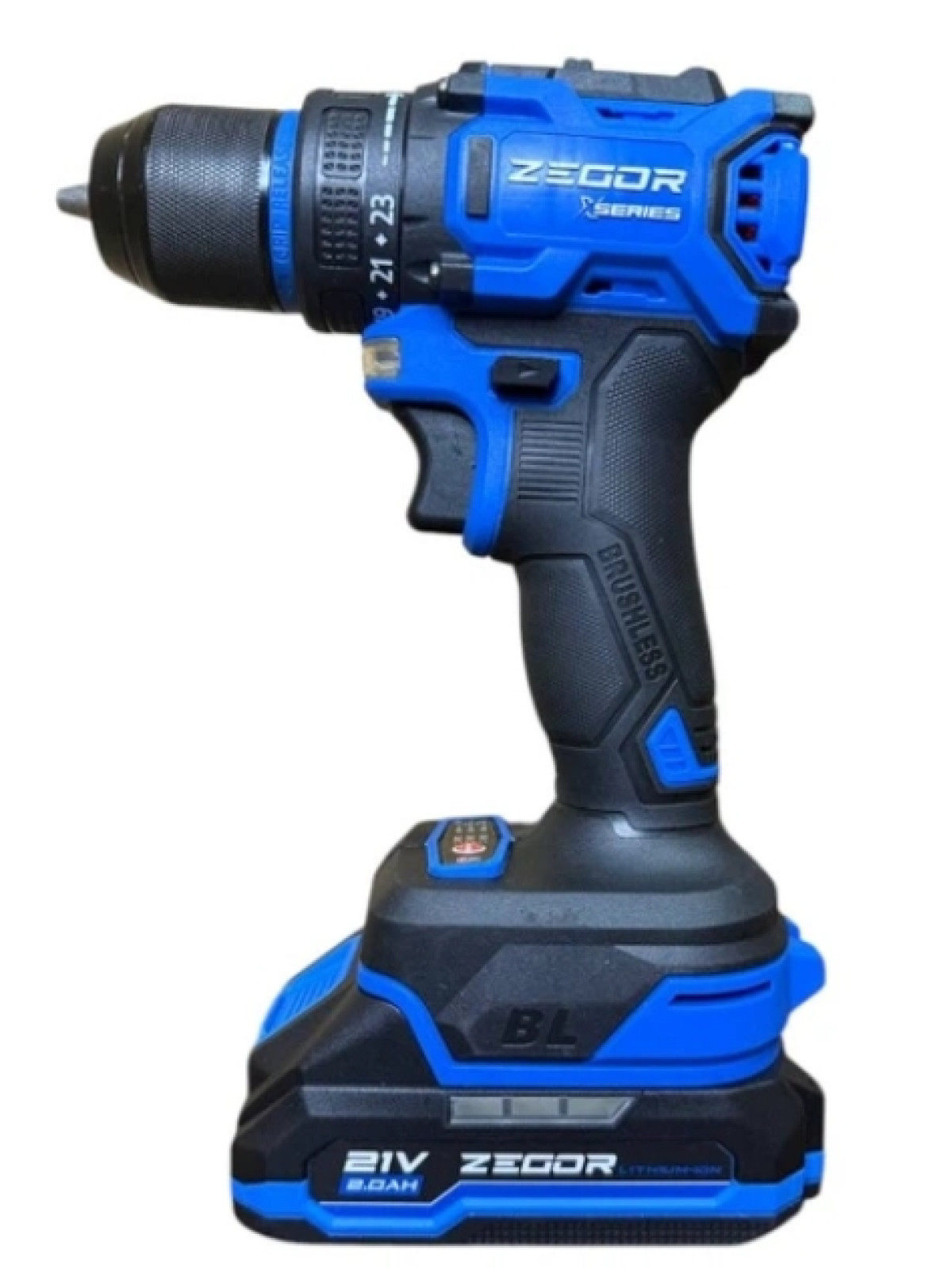 Акумуляторний безщітковий шуруповерт ZEGOR. Напруга 21V (Li-Ion). Серія CDAX, безщітковий двигун. Крутний момент 45-55 Н·м ().