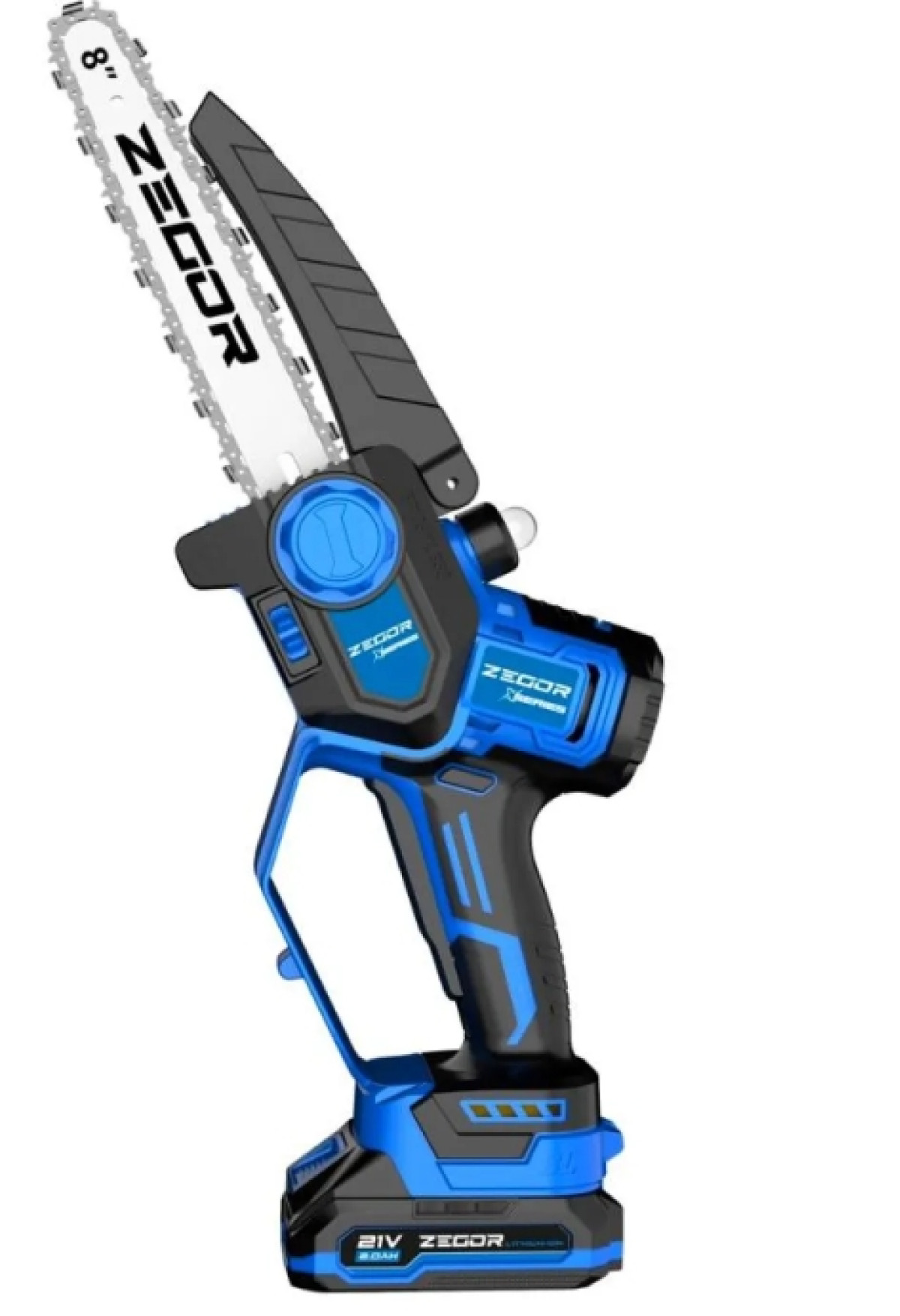 Акумуляторна безщіткова (BL) ланцюгова пила ZEGOR. Напруга 21V. Довжина шини 8 дюймів (20 см). Серія CSAX (Advanced Chainsaw). Призначена для обрізки гілок та дрібних будівельних робіт.