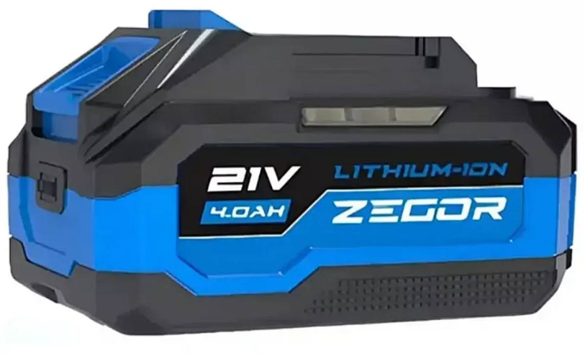Літій-іонний (Li-Ion) акумулятор ZEGOR. Напруга 21V, підвищена ємність 4.0 А·год (40). Маркування X вказує на приналежність до просунутої серії (CDAX/SDPX) або наявність додаткового захисту/індикації.
