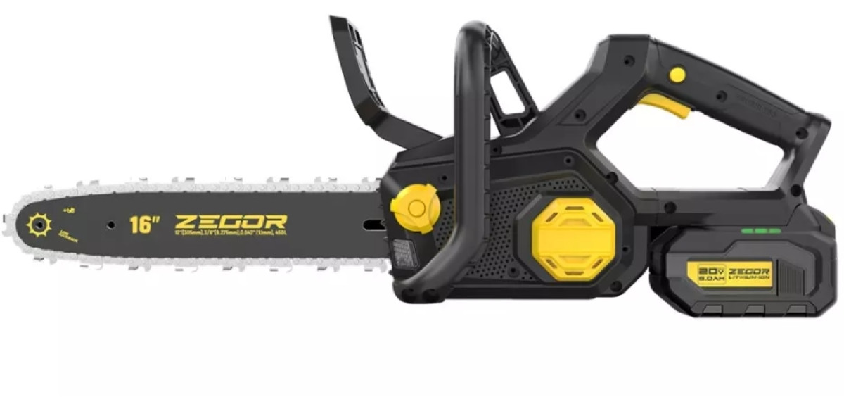 Акумуляторна безщіткова (BL) ланцюгова пила ZEGOR. Напруга 21V, довжина шини 16 дюймів (40 см). Серія CSPB. Збільшена довжина шини для більших робіт та заготівлі дров.