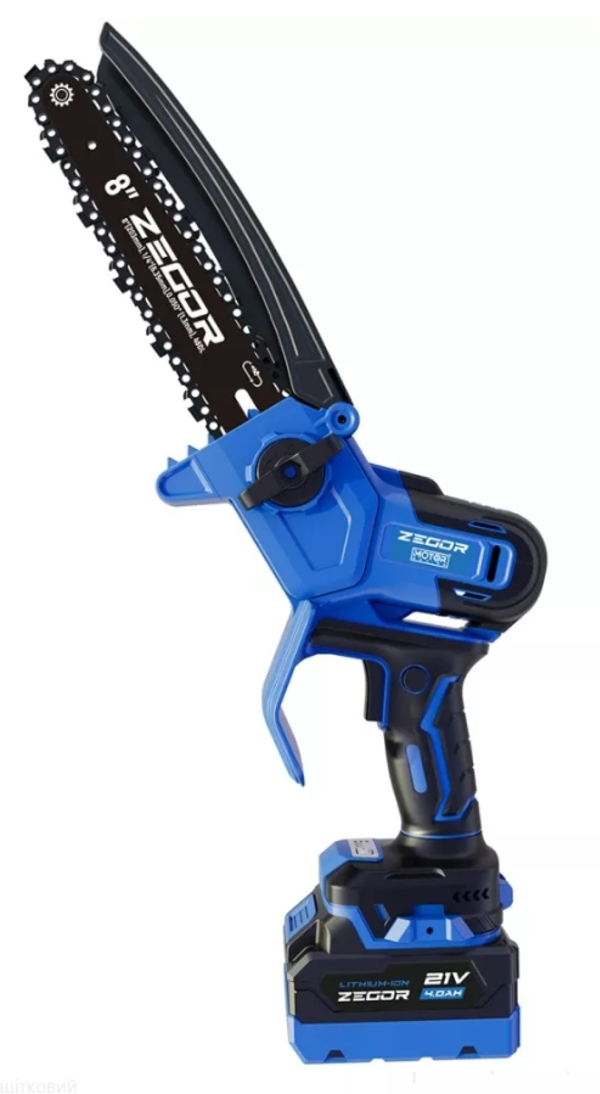 Акумуляторна безщіткова (BL) ланцюгова пила ZEGOR. Напруга 21V, довжина шини 8 дюймів (20 см). Серія CSMQ (Mini/Compact). Призначена для обрізки та садових робіт.