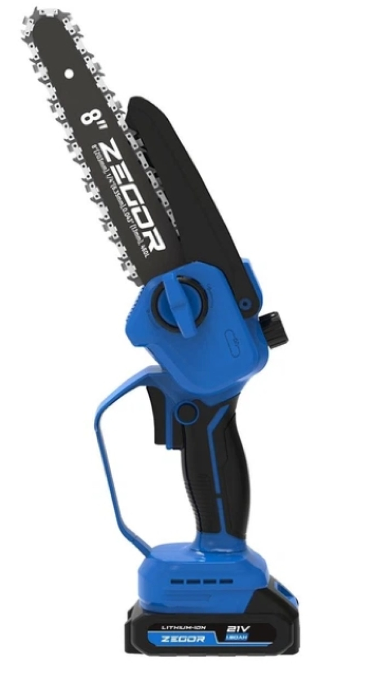 Акумуляторна безщіткова (BL) ланцюгова пила ZEGOR. Напруга 21V, довжина шини 8 дюймів (20 см). Серія CSMH (Mini/Compact, H-handle). Призначена для обрізки та садових робіт.