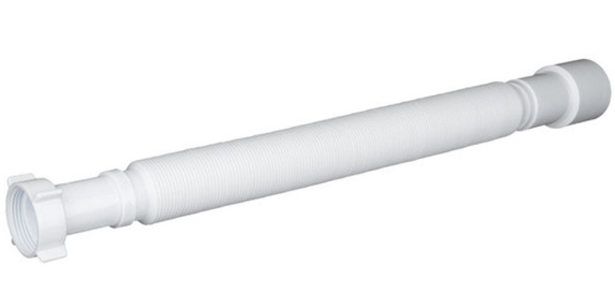Подовжена гофрована труба К216EU призначена для підключення сифонів з випуском 1 1/4 дюйма (малі умивальники) до каналізаційних розтрубів 40/50 мм, розташованих на значній відстані.