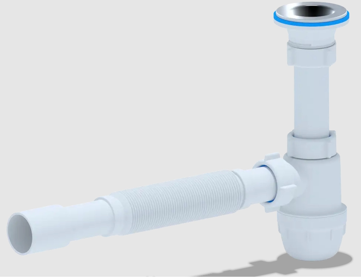 Сифон В1015EU — це трубний (колінний) сифон для умивальників з випуском 1 1/4 дюйма. У комплекті йде гофрована труба 32х32/40 мм, що забезпечує гнучкість підключення до каналізаційного розтруба 32 або 40 мм.