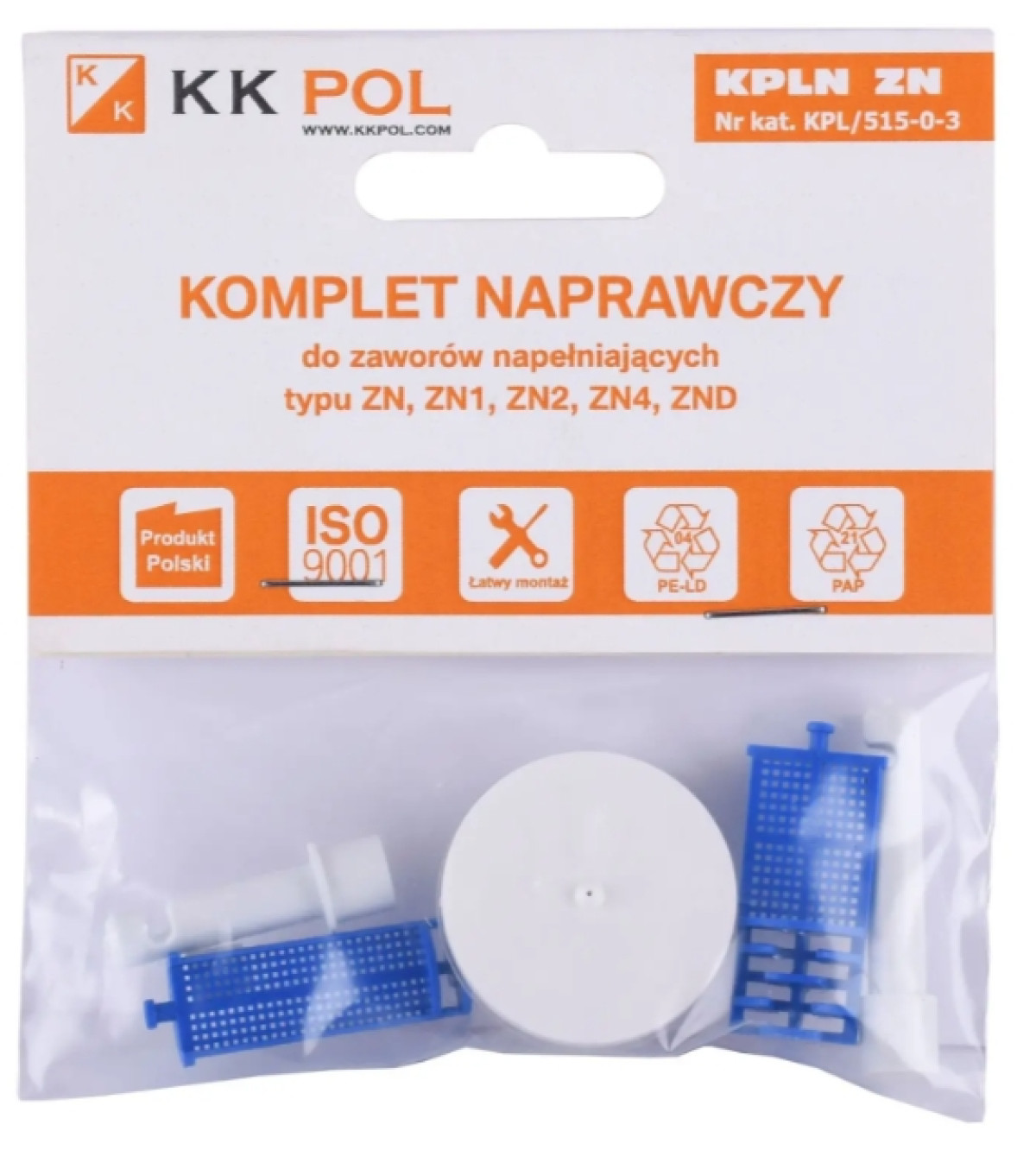 Ремонтний комплект ZN — це універсальний набір запасних частин та механізмів, призначений для ремонту зливних бачків унітазів. Комплект, як правило, включає основні елементи, які найчастіше виходять із ладу: ущільнювальні прокладки (для клапанів та з'єднань), гумову грушу або мембрану, а також дрібні пластикові деталі для спускного або впускного механізму. Призначення комплекту ZN — швидко та ефективно усунути протікання або несправності у зливному бачку без необхідності повної заміни механізму. Літера ZN може вказувати на сумісність із певним типом арматури, виготовленої з цинкового сплаву (Zn) або певного бренду.
