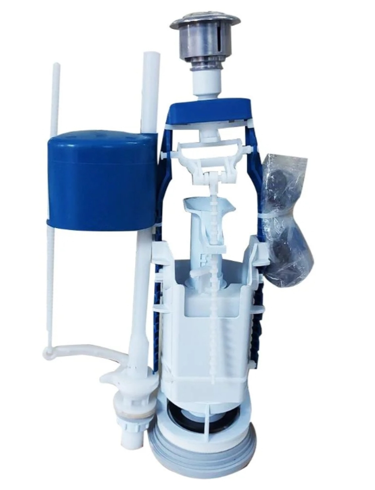 Арматура АБ 77.57.14.3 — це повний комплект внутрішнього механізму для зливного бачка унітазу з нижнім підведенням води. Комплект включає впускний клапан (нижній, артикул 57, що забезпечує тихий забір води) та зливний клапан. Нижнє підведення води є стандартом для сучасних, тихих унітазів, оскільки вода надходить знизу, мінімізуючи шум. Арматура є універсальною та підходить для більшості керамічних бачків з нижнім вхідним отвором. Механізм забезпечує регулювання об'єму змиву та надійне, герметичне перекриття води. Виготовлений із пластику, стійкого до впливу води.