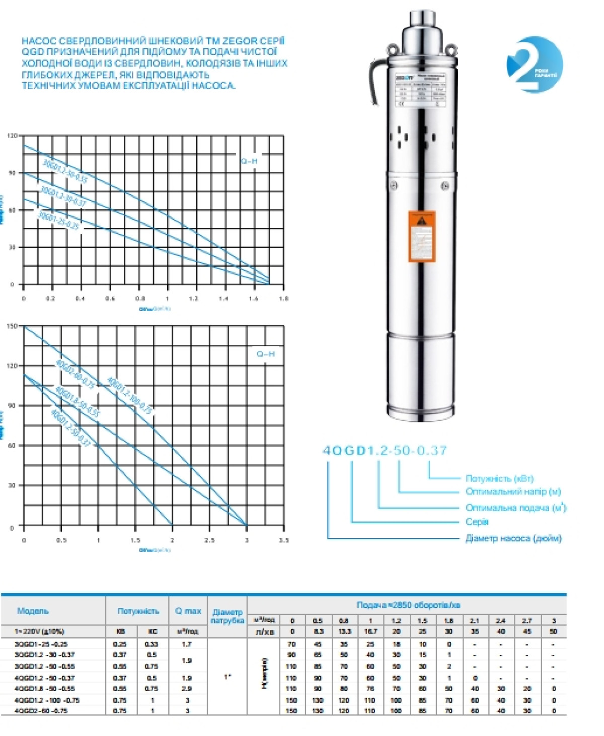 - Модель: 3QGD1.2-30-0.37-10M (ZEGOR).