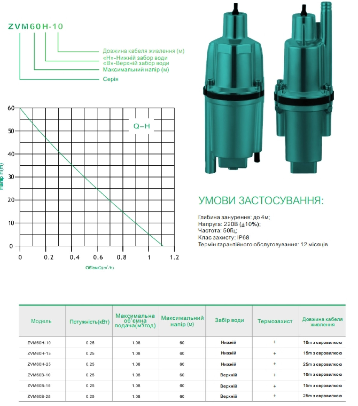 Насос вибрационный ZVM60B-10 (ZEGOR): Бюджетный насос для колодцев с нижним забором воды