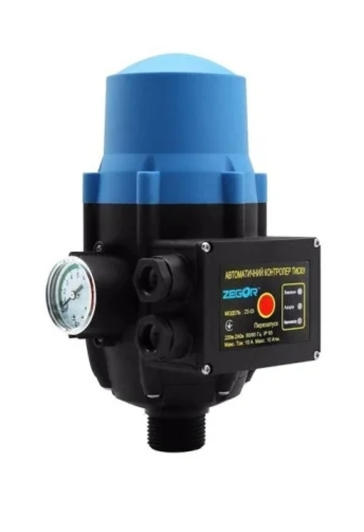 Контроллер давления ZS-03 от ZEGOR — это электронное устройство (пресс-контроль), представляющее собой топовую модель в линейке, предназначенную для автоматического управления работой поверхностного или погружного насоса. Модель ZS-03, как правило, предлагает полный спектр функций, включая регулируемое давление включения (например, от 1.0 до 3.0 бар), возможно, регулируемое давление отключения, и, в некоторых версиях, функцию автоматического перезапуска после сухого хода или сбоя питания. Устройство сочетает в себе функции реле давления, реле протока и защиты от сухого хода. Оно обеспечивает автоматическое отключение насоса при прекращении водопотребления и защиту от работы без воды. Контроллер имеет встроенный манометр и электронную плату, которая обеспечивает максимально точную и стабильную работу системы. ZS-03 монтируется непосредственно на напорный трубопровод и имеет стандартные резьбовые соединения (обычно 1 дюйм). Использование ZS-03 обеспечивает бесперебойную подачу воды с возможностью наиболее тонкой настройки системы. Это наиболее функциональное и адаптируемое решение для автоматизации водоснабжения, предназначенное для требовательных пользователей и сложных систем.