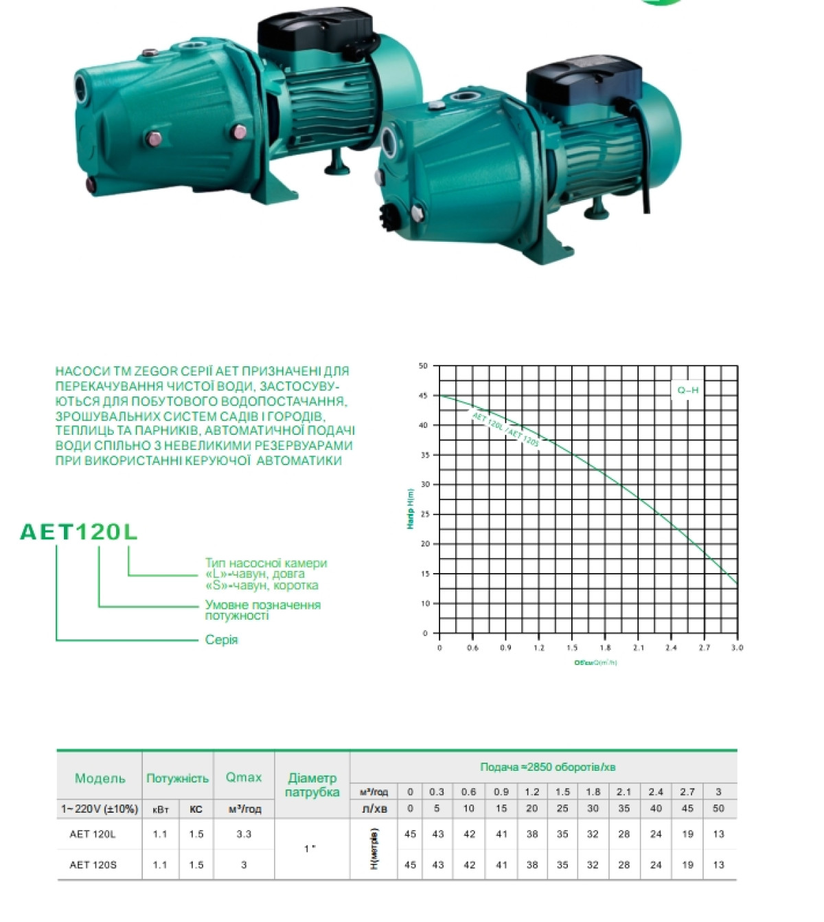 Насос поверхностный центробежный AET-120L (ZEGOR): Самовсасывающий насос с эжектором и высокой производительностью