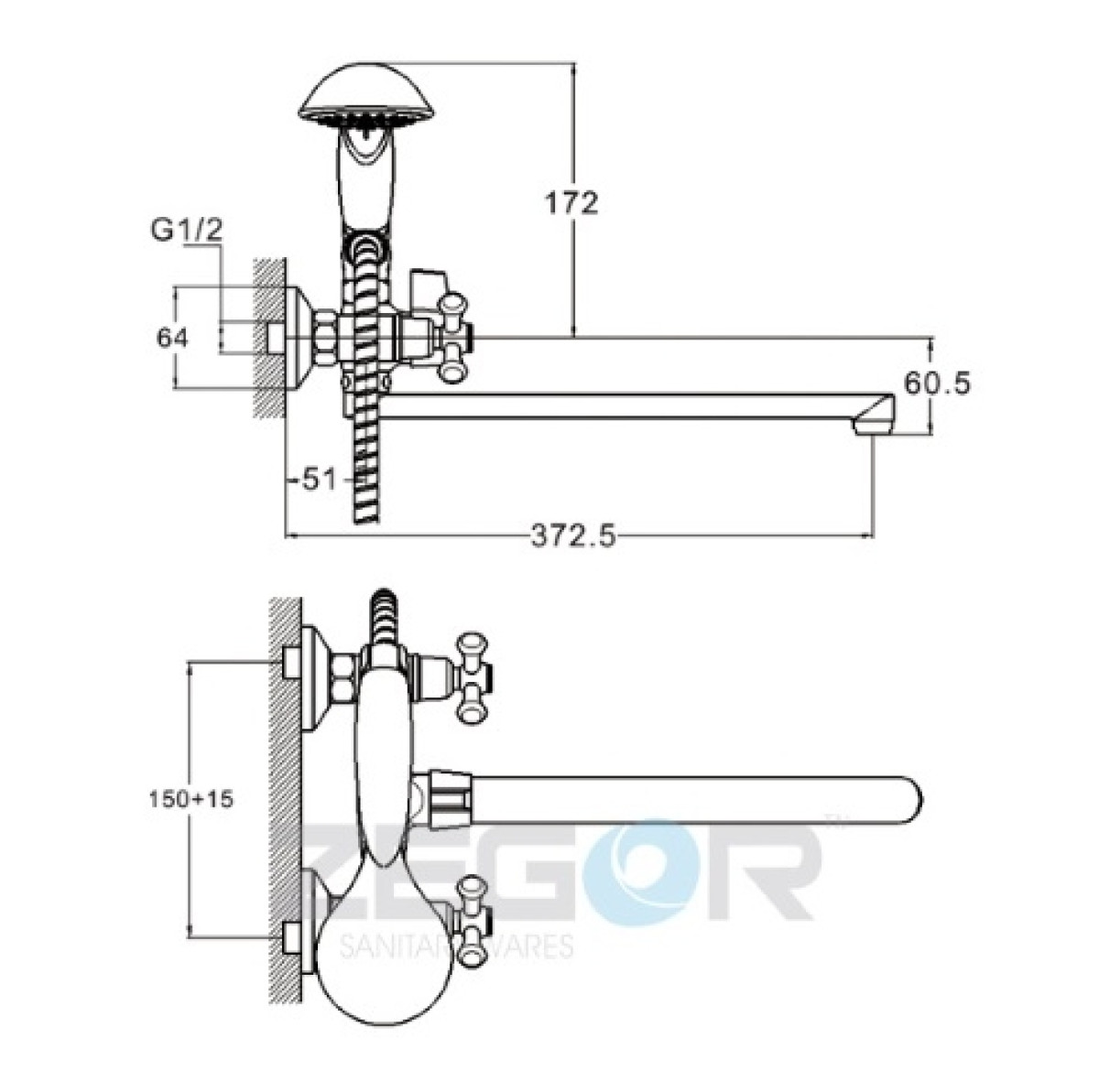 - Тип: Смеситель для ванны, настенный, однорычажный.