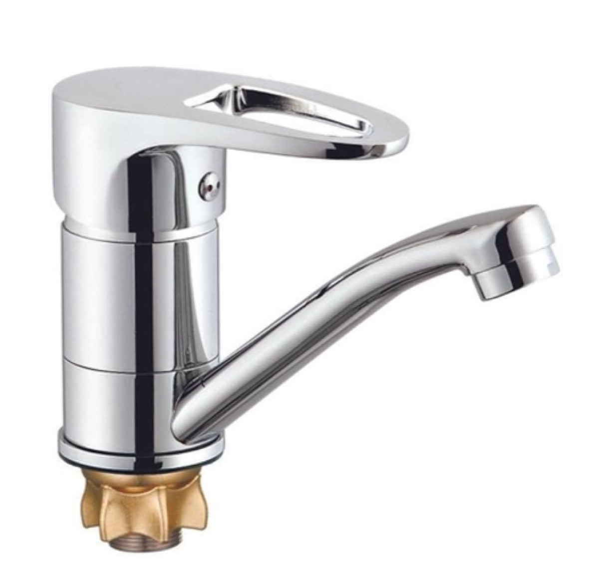 Смеситель для кухни PED4-B180 ZEGOR: Настольный однорычажный смеситель с коротким изливом (Хром)