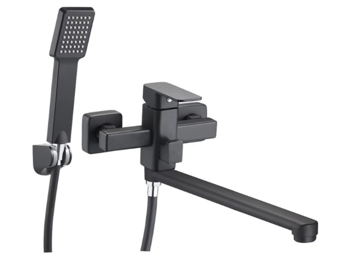Смеситель для ванны LEB7-B123YB ZEGOR: Настенный однорычажный смеситель с длинным изливом (Черный)