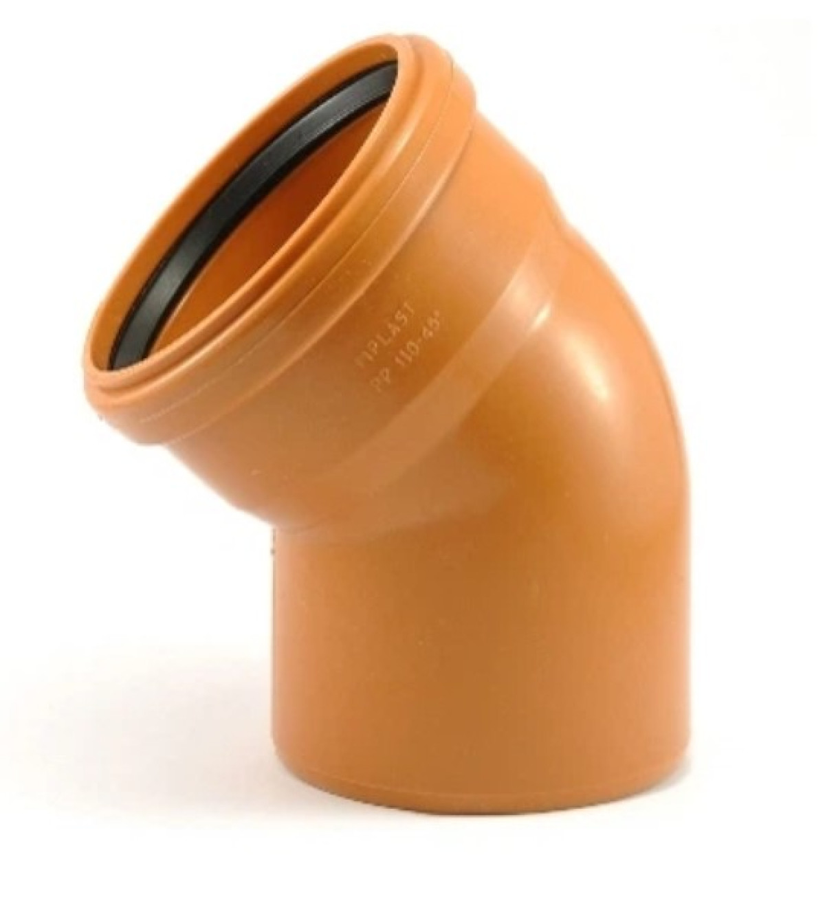 Коліно 160/45 — це каналізаційний відвід (коліно), призначений для зміни напрямку трубопроводу зовнішньої (рудої) каналізації на кут 45 градусів. Виріб має діаметр 160 мм та виготовлений з міцного ПВХ або поліпропілену, що забезпечує високу стійкість до механічних навантажень, хімічних речовин та перепадів температур. З'єднання здійснюється за допомогою розтруба з ущільнювальним кільцем, що гарантує герметичність системи. Коліно 160/45 є стандартним і необхідним елементом при монтажі зовнішніх каналізаційних мереж.