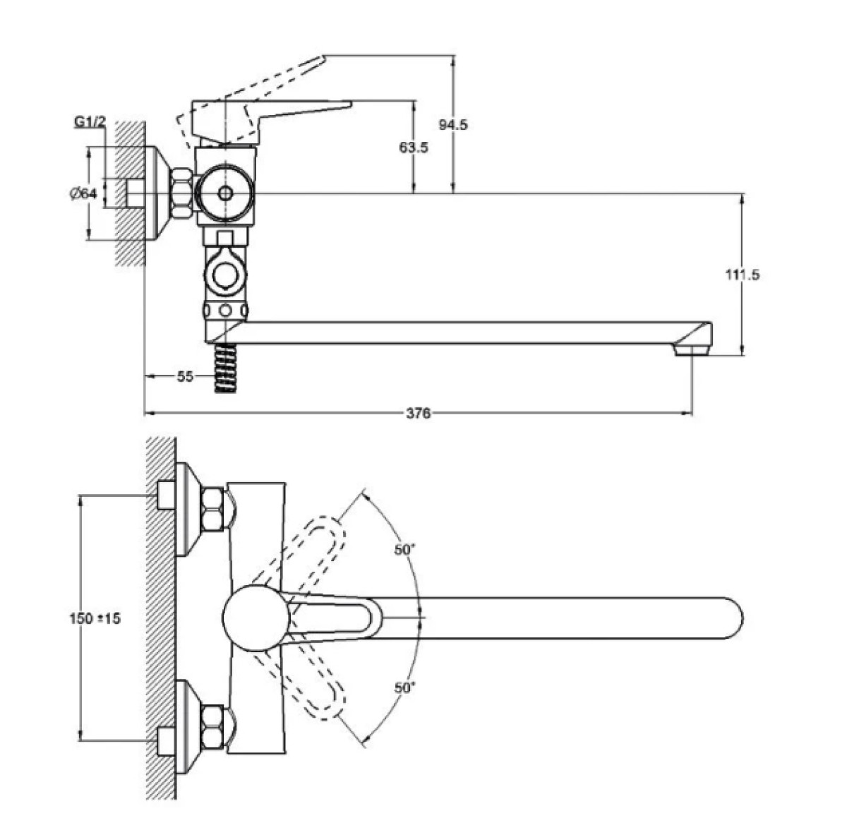 Смеситель для ванны PUD6-A045 ZEGOR: Настенный однорычажный смеситель для душа (без излива)