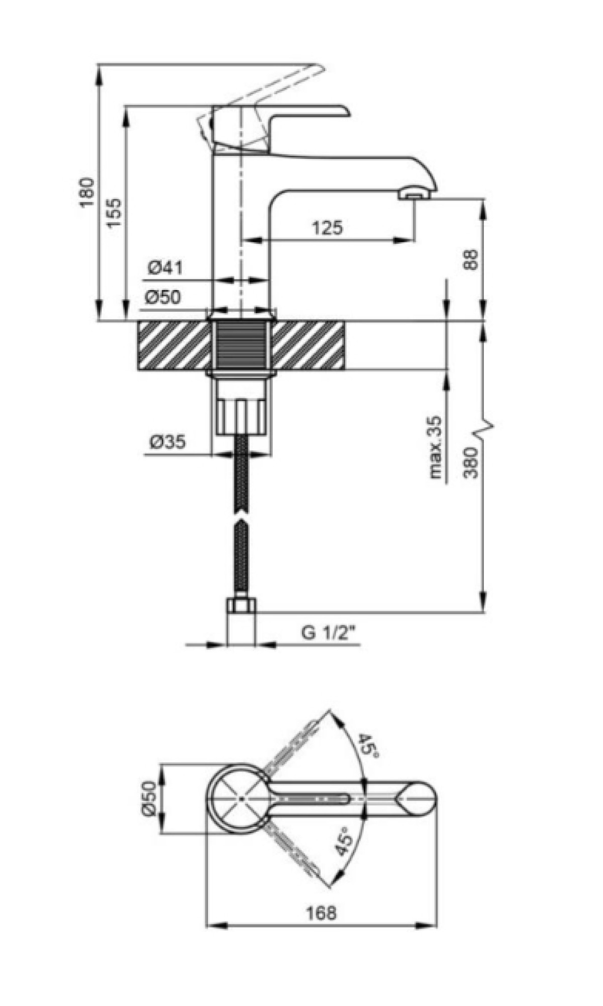 - Тип: Смеситель для умывальника, одноважільний.