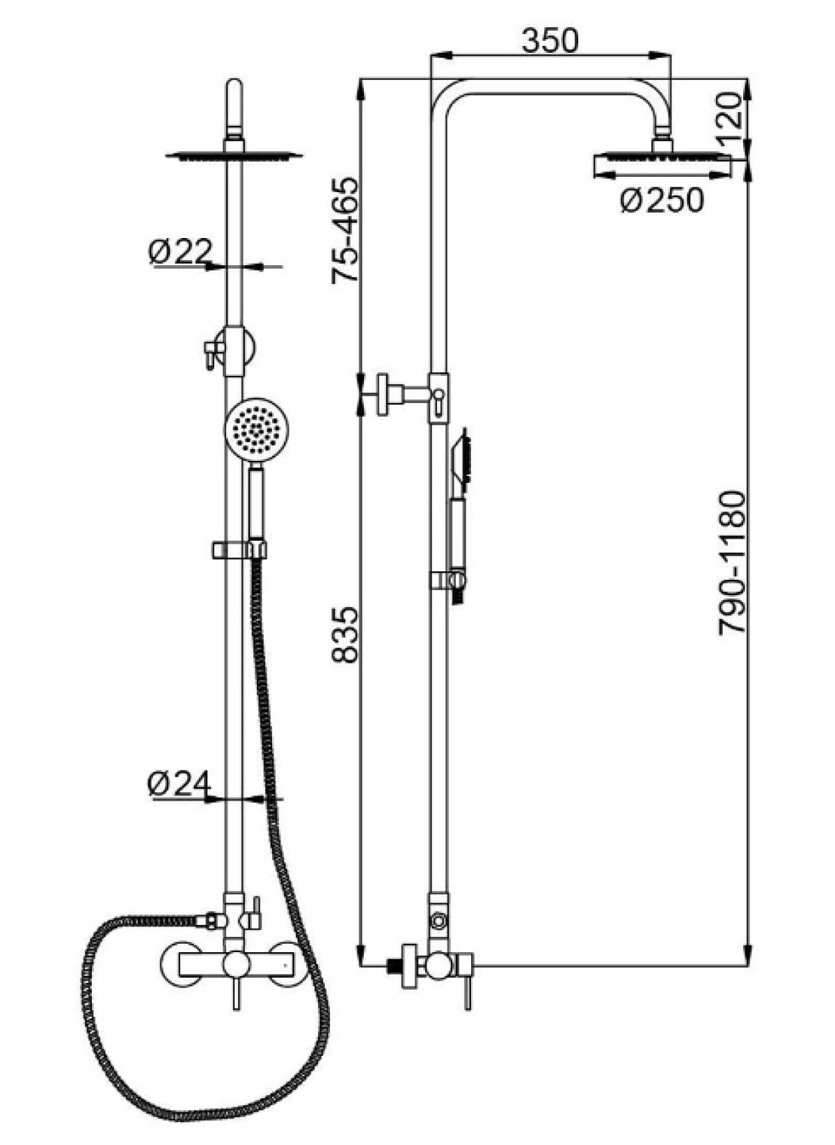 - Тип: Душевая система (стойка) со смесителем.