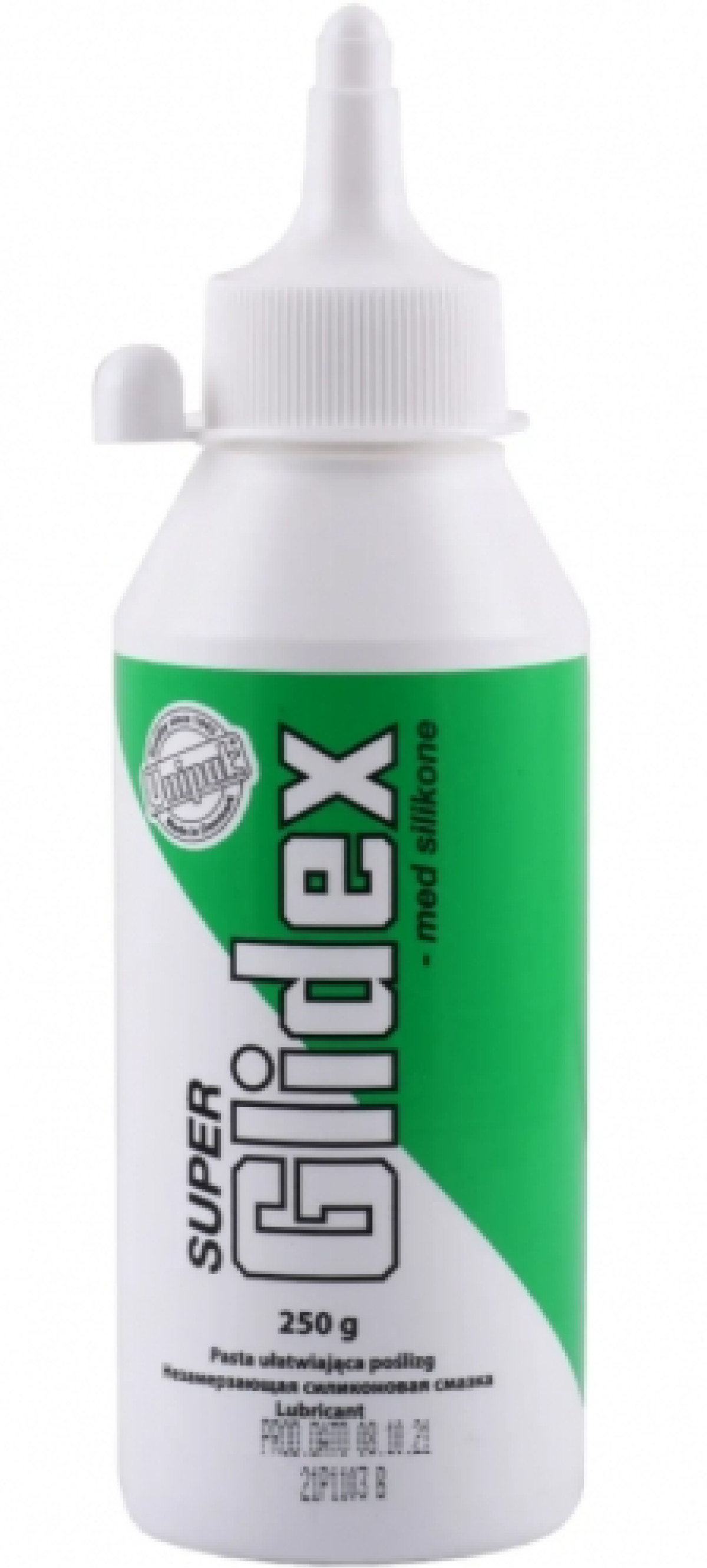 Силиконовая паста Super Glidex (Unipak) — это та же специализированная силиконовая смазка для монтажа труб, но в упаковке увеличенного объема — 250 г (пластиковая бутылка). Используется профессионалами для монтажа канализационных и водопроводных систем, где требуется большой расход смазочного материала. Защищает уплотнения, облегчает ввод труб и предотвращает их неправильную установку.