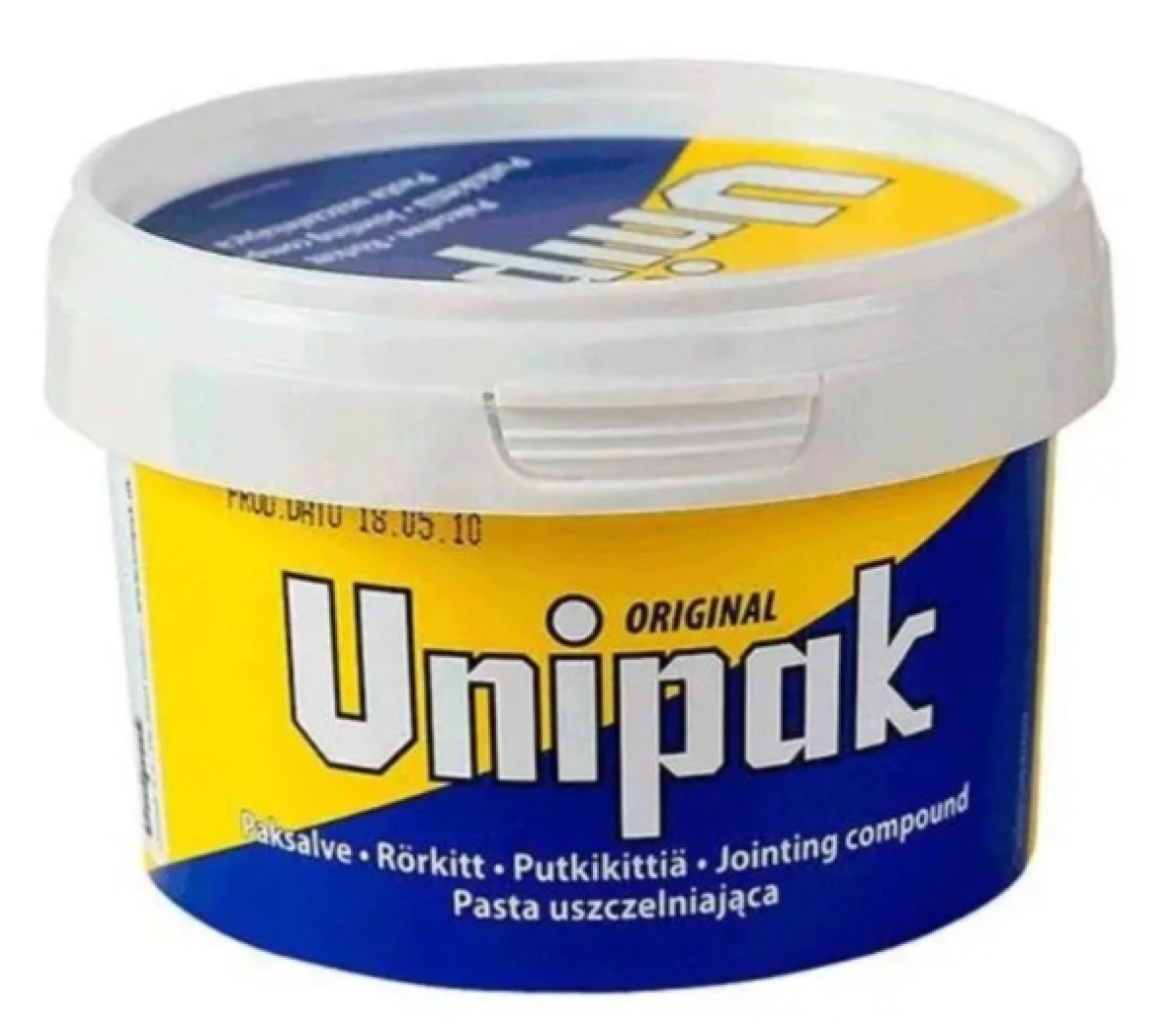 Уплотнительная паста Unipak — это специальная герметизирующая паста объемом 360 г (в ведерце). Используется вместе с сантехническим льном (паклей) для уплотнения резьбовых соединений в системах водоснабжения (питьевая вода), отопления и газоснабжения. Максимальная рабочая температура — до 140°C. Обеспечивает герметичность соединений при давлении до 16 бар (с льном). Паста позволяет легко демонтировать соединения даже после длительной эксплуатации.