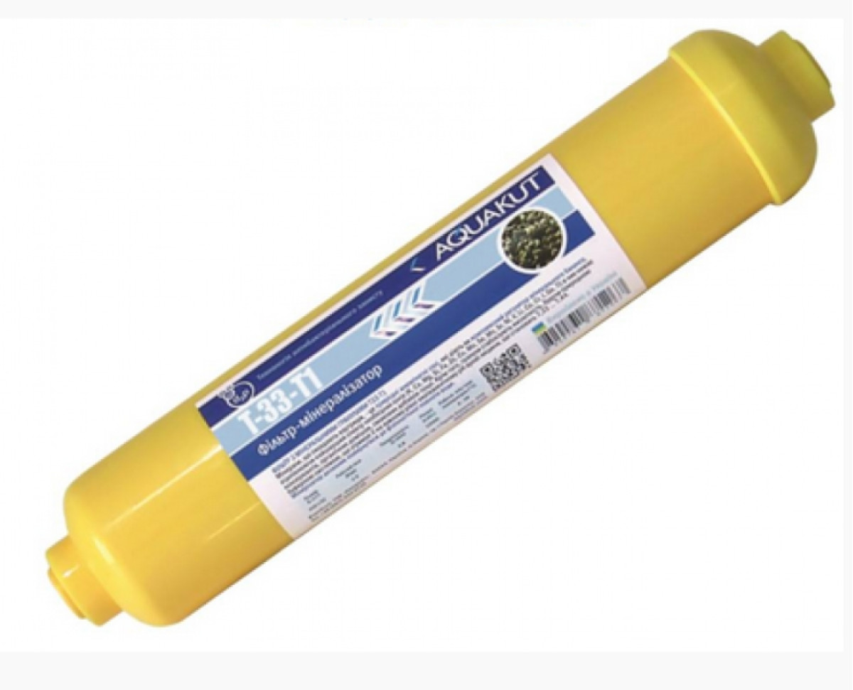 Фильтр T-33-T1 — это линейный картридж-минерализатор для систем обратного осмоса. Содержит природные минеральные гранулы. Обогащает очищенную воду минералами, восстанавливая ее pH. Имеет стандартное резьбовое соединение.