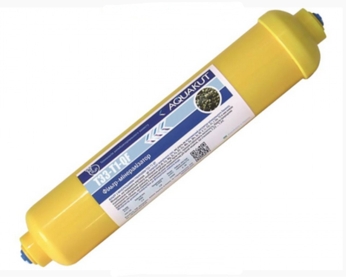 Фильтр T-33-T1 QF — это линейный картридж-минерализатор для систем обратного осмоса. Содержит природные минеральные гранулы. Обогащает очищенную воду минералами. Имеет быстросъемное соединение Quick Fitting (QF).