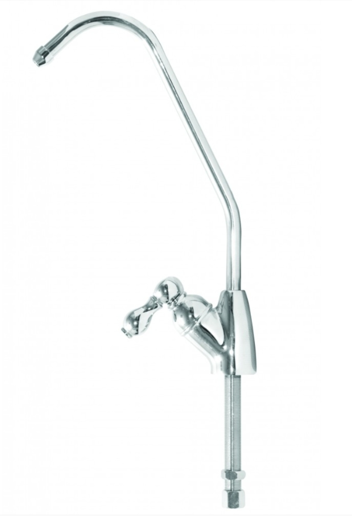 Одинарный керамический кран FCT-4 с высоким изливом и поворотным (чаще всего четвертьоборотным) рычагом. Предназначен для подачи очищенной питьевой воды из систем фильтрации (обратный осмос) на мойку/столешницу.