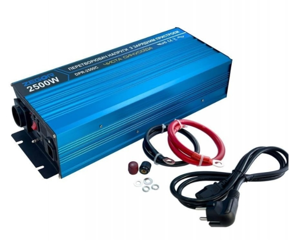 Інвертор ZEGOR. Максимальна потужність 2500 VA. Літера 'C' може вказувати на функцію зарядного пристрою або чисту синусоїду.
