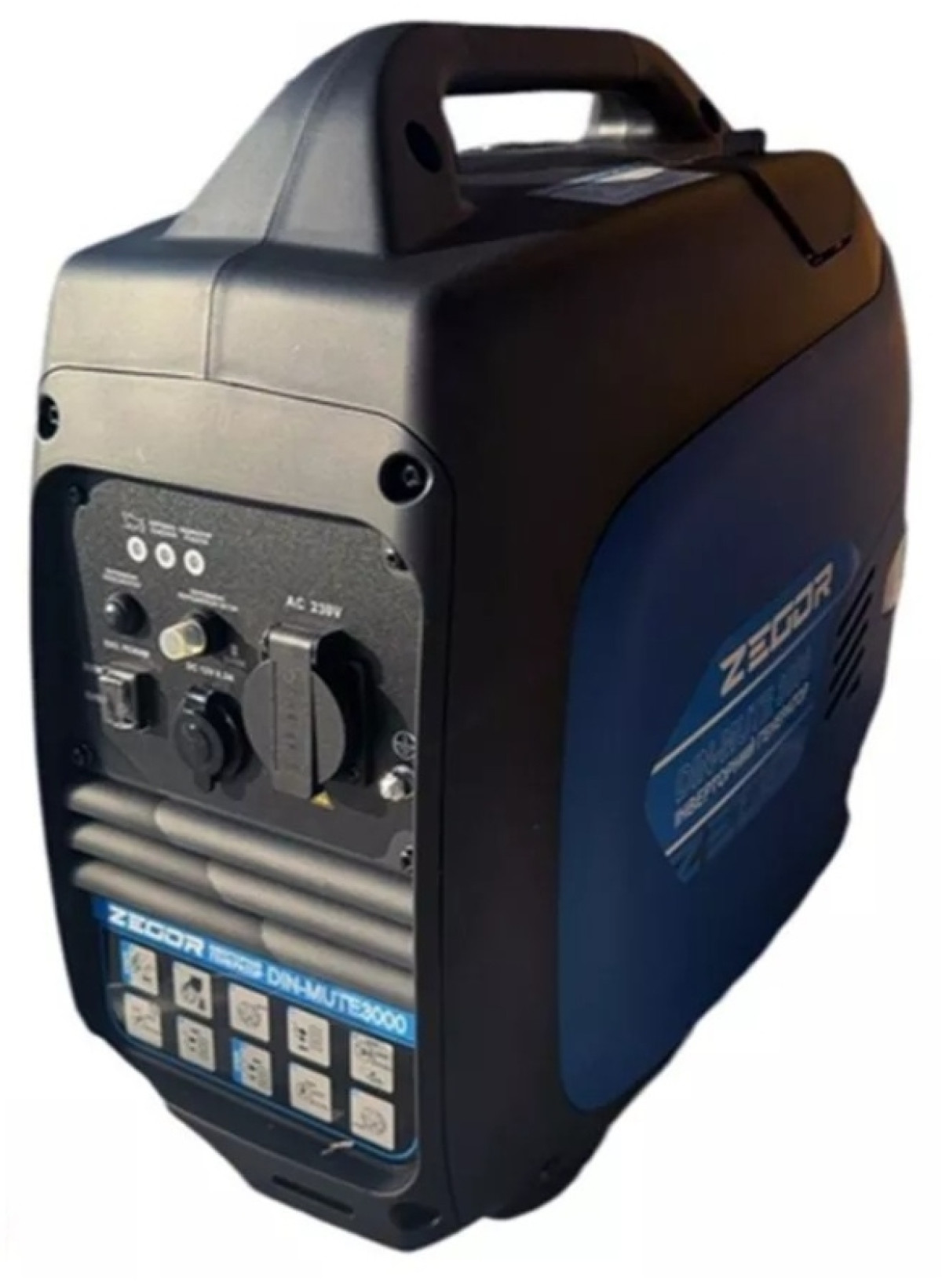 Инверторный бензиновый генератор ZEGOR (серия DIN-MUTE). Номинальная мощность 3.0 кВт (). Особенность: закрытый корпус (MUTE) для пониженного уровня шума. Идеален для кемпинга или использования вблизи жилых зон.